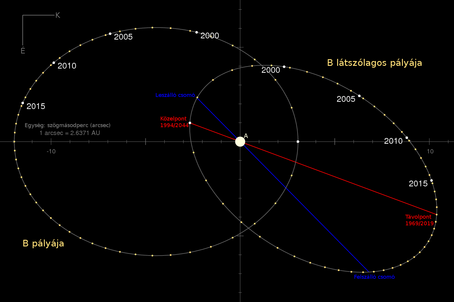 Sirius B pályája az A körül. (Kattintásra nagyban is látható.) (forrás, szerző, CC-BY-SA )